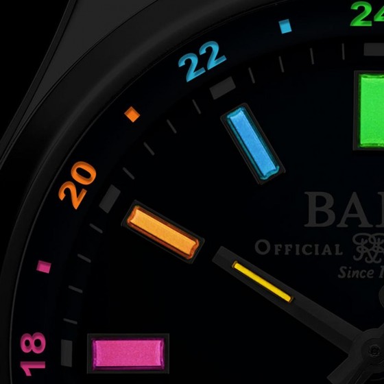 ▪ 自體發光微型氣燈:39支自體發光微型氣燈,置於錶面、時、分針,方便夜間讀時