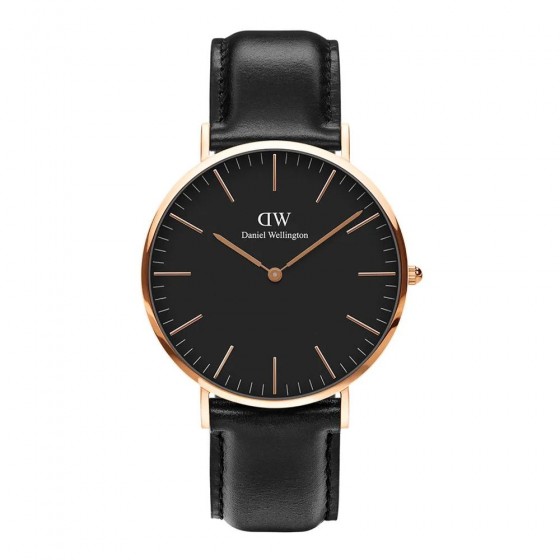 Daniel Wellington DW00100127 40mm 黑真皮皮革錶 DW錶