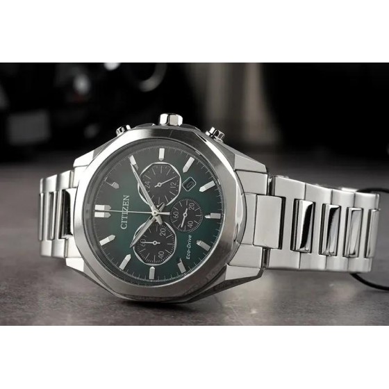 星辰 CITIZEN CA4590-81X 光動能 綠面 三眼 計時腕錶