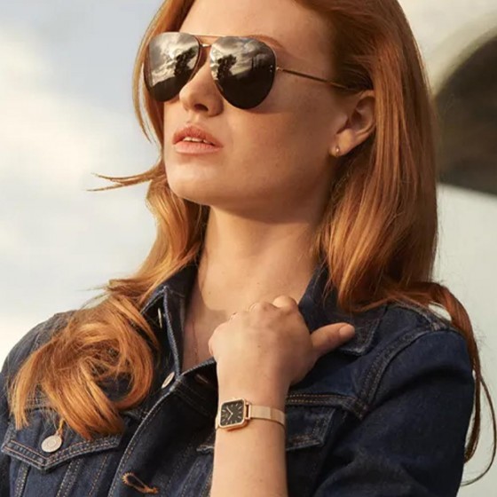 Quadro Studio 採用精緻小巧的黑色正方形錶盤,搭配時尚流線的鋼琴錶帶。 採用拋光不銹鋼製成,並提供精緻的玫瑰金鍍層,永恆的新復古時尚宣言。