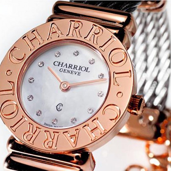 外圈錶殼 CHARRIOL 品牌字樣,玫瑰金色系