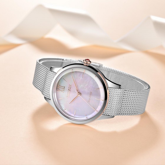CITIZEN 星辰 錶 EM0816-88Y 白蝶貝米蘭帶 光動能 腕錶