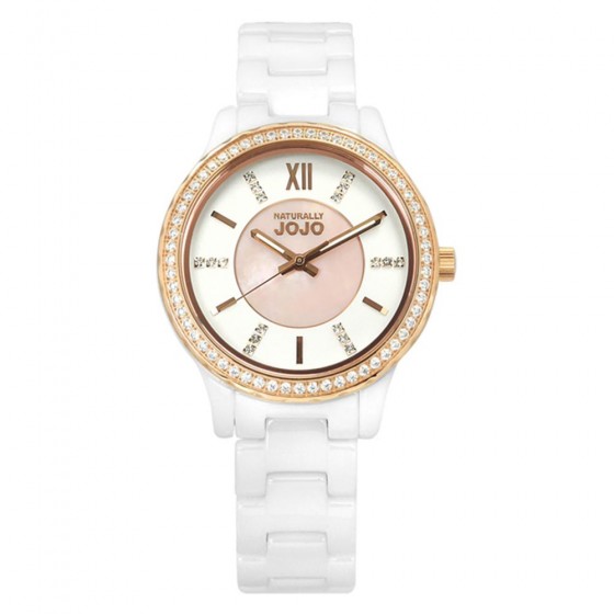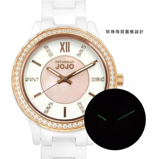 NATURALLY JOJO JO96933-80R 精緻優雅 珍珠母貝 羅馬刻度晶鑽錶圈陶瓷手錶