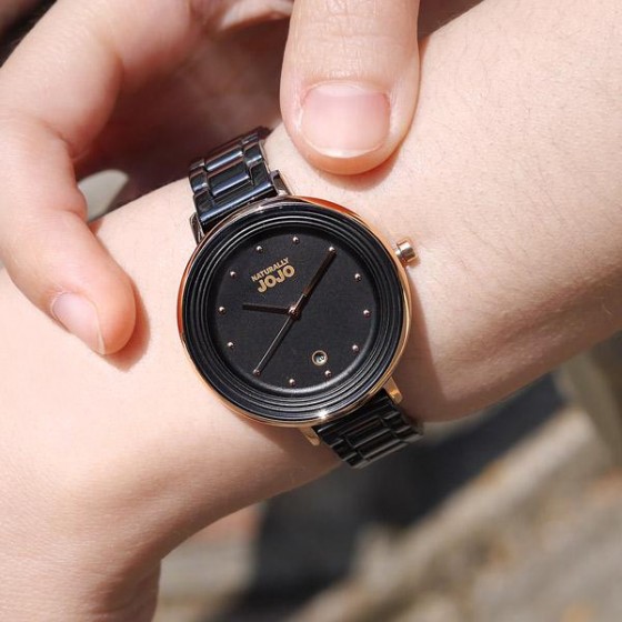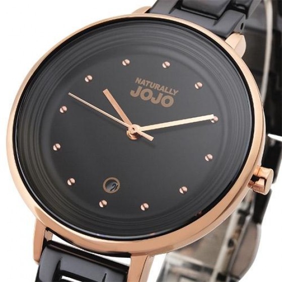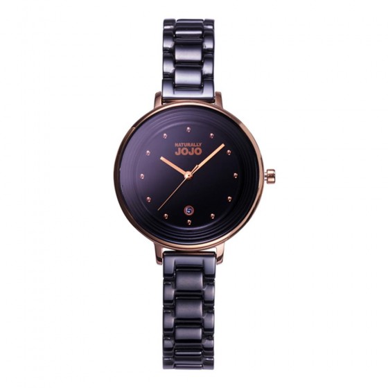 • NATURALLY JOJO JO96926-88R 黑面玫金殼黑陶瓷腕錶定律週期陶瓷時尚腕錶