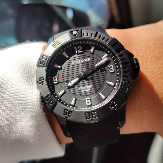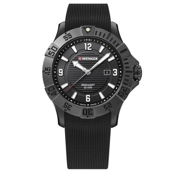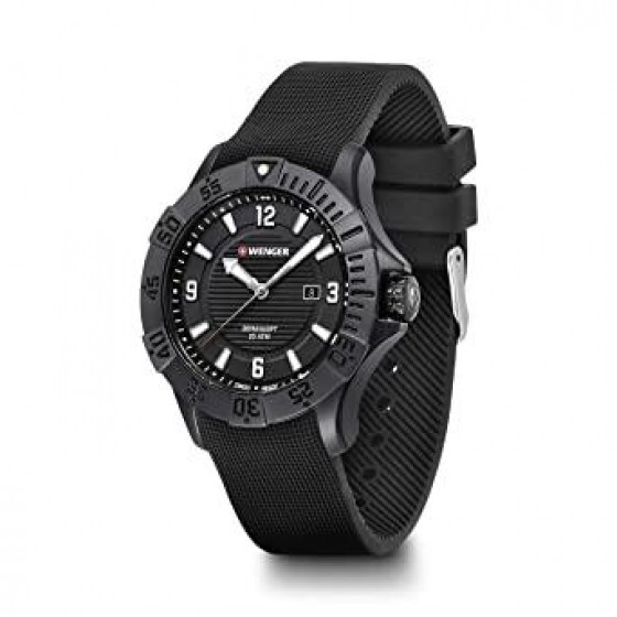 Wenger 成立於西元1893年瑞士Jura地區,至今已有124年歷史, 為瑞士悠久歷史品牌之一,始終堅持於品質、工藝與耐用度, 早期以嚴謹標準製作軍刀聞名,並於全世界打響名號。瑞士官方軍隊曾將WENGER軍刀列為標準配備。 Wenger 的計時器都是可靠,具有實用功能和精心設計的, Wenger 捕捉到時代的精神。因此以合理的價格提供愛好瑞士品牌手錶的人們所設計。 Seaforce 海神200米防水潛水錶 全系列兩百米防水功能,潛水外圈設計以PVD光面鍍膜,超強夜光, 提供潛水者更容易的水下辨識功能,日常配戴更是光彩奪目。 搭配不鏽鋼錶帶,強調無懈可擊的堅固性能,搭配計時功能強化實用性。