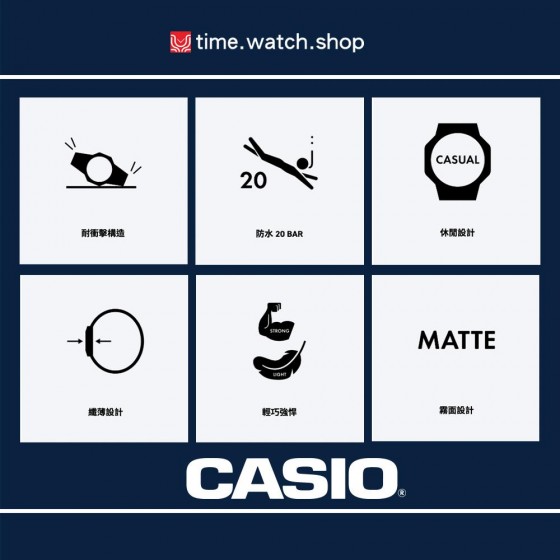 G-SHOCK推出全新街頭軍事系列,精挑細選3種型號錶款,打造截然不同的街頭穿搭利器。DW-5610SU與DW-5610SUS選用G-SHOCK經典5600為基底,並首次採雙層錶圈設計,相較以往使用一體成形與成色的錶殼,讓錶圈與錶殼得以分別上色並達撞色之效果,提供更多設計上的可能性。DW-5610SU顏色上分別以黑錶圈搭配綠、灰錶殼和錶帶,DW-5610SUS則採黑色錶圈搭配淺棕色錶殼與黑色帆布錶帶,並選用沙漠迷彩點綴於錶面,同時附上額外一組樹脂錶帶供消費者替換。GA-2000SU則分別以綠、藍迷彩點綴黑色與藍色錶殼之錶盤,於手錶細節處展現街頭軍風。甫推出即大受歡迎的GA-2100SU同樣採用雙層錶圈設計,以綠色迷彩錶圈搭配黑色錶殼和錶帶。並額外推出GA-2110SU追加型號,分別以黑色錶圈搭配黃色與綠色錶殼和錶帶,提供愛好者更多樣的外型穿搭選擇。3種型號錶款皆具備G-SHOCK的耐衝擊構造、防水200米、計時碼錶、倒數計時、每日鬧鈴的多樣機能。