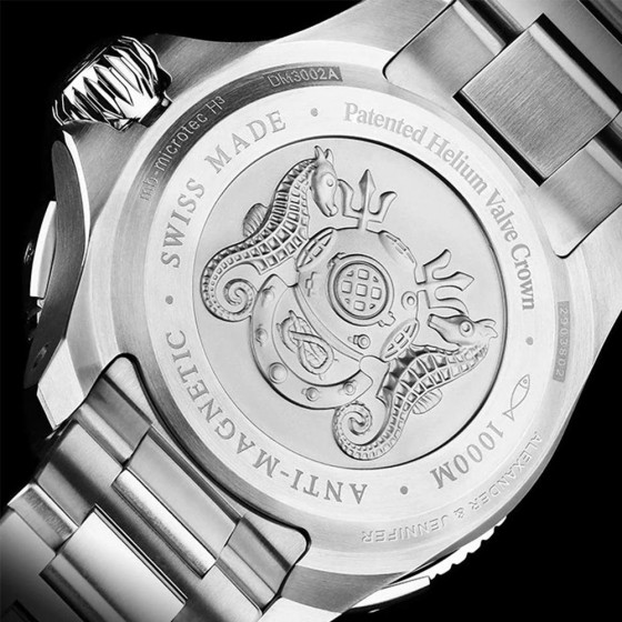 1000 米防水性能,DeepQUEST II 系列配備由 BALL Watch 設計的靈 巧創意。我們專利的自動氦氣排放閥置於錶冠內,能讓在高壓的環境下所積存於腕錶內的氦氣能於減壓過程時被安全排放,不會破壞腕錶結構。一般的氦氣 排放閥設計都會在錶殼上多加一個開口,影響防水性能,而 BALL Watch 的專利 設計,屬鐘錶業界首創,便徹底解決了這個問題。