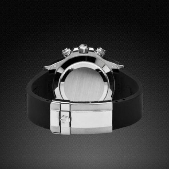 硫化橡膠錶帶設計適合勞力士迪通拿錶帶錶殼和展開式表扣(僅限勞力士機芯),錶殼具有“塊狀集成”,可實現完美、無旋轉的安裝。注意:不 兼容帶有 OysterFlex 橡膠錶帶的新版 Daytona 。牡蠣手鍊版本也不兼容。