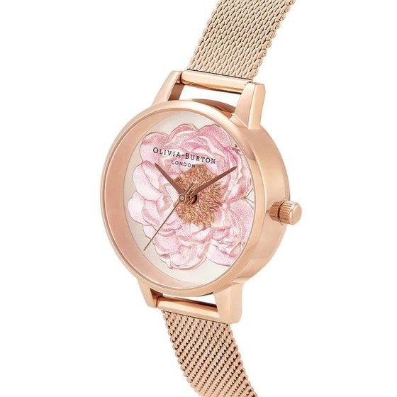 受到萬物開花的啟發,這款手錶適合那些真正的花卉狂熱者。作為我們迄今為止最具質感的款式之一,這款限量版腕錶採用獨特的 3D 花朵設計,覆蓋在閃亮的 30 毫米太陽紋錶盤上。飾以淡粉色玫瑰金色調,搭配玫瑰金米蘭錶帶——這款手工作品夢幻、精緻且獨一無二。