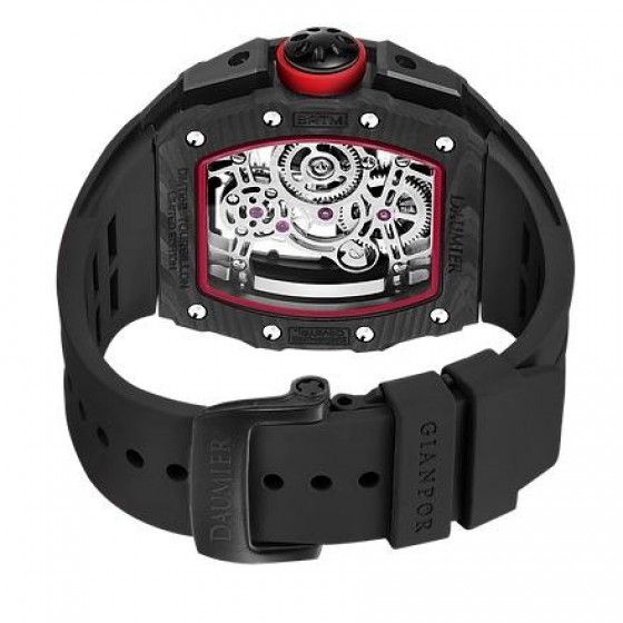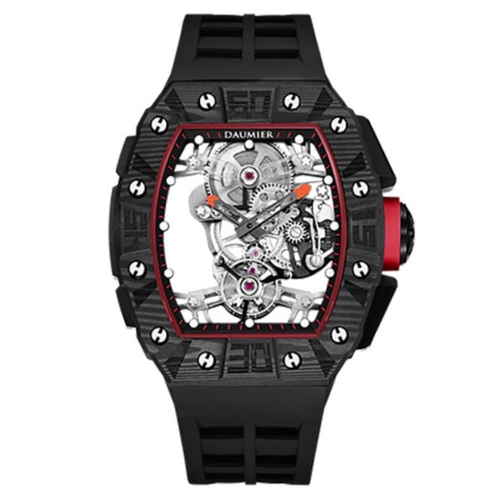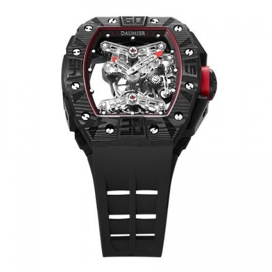 機芯資料及功能:高擺動頻率陀飛輪鏤空設計手動上發條機械機芯,陀飛輪透視劍形橋拱及六角型蜂巢式設計機芯支架,並獲得外觀設計專利