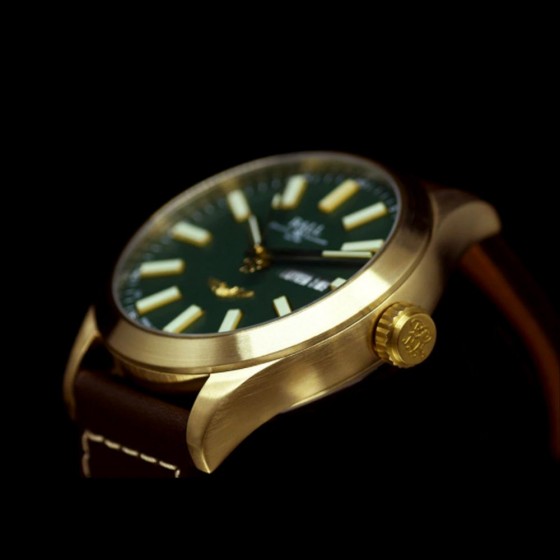 Engineer III Bronze Star是波爾錶首只銅錶系列,所採用的青銅是由銅及鋁合金揉合而成,能高度抵禦嚴峻衝擊及具備極佳防腐蝕性能。其鏽麗光澤將隨著佩戴者的佩戴習慣及時間流逝不斷變化,每一隻手錶都細訴出動人的故事。腕錶配備先進技術製造的自體發光微型氣燈,提供無可比擬的光亮度。工程師III青銅星裝配專利註冊Spring LOCK抗震保護系統和防震裝置,以減低震盪對手錶造成的衝擊,保障手錶在80,000A/m磁場下運作不受影響。