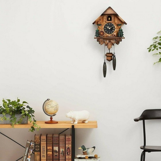 德國知名故事:圖案咕咕鳥水車黑森林木雕 優質機芯 、手工雕刻 整點時,窗戶會自動打開,布穀鳥會飛出窗門報時。
