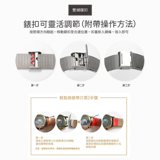產品類型:雙按扣米蘭錶帶/單扣米蘭錶帶