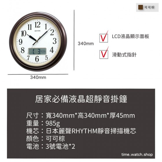 機芯:日本麗聲四兆赫茲石英靜音機芯