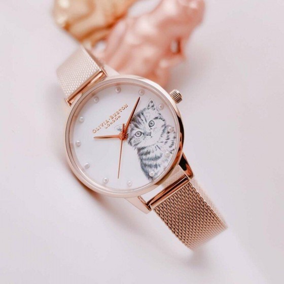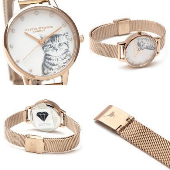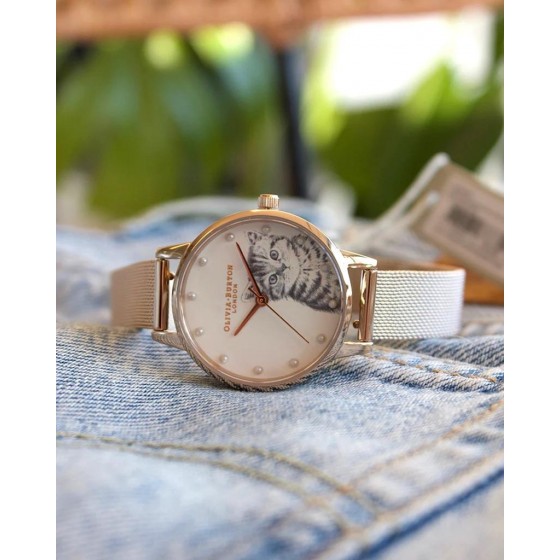 • Olivia Burton OB16WL88 Q萌貓咪款米蘭帶錶帶手錶原裝英國進口 腕錶 女錶手錶生日