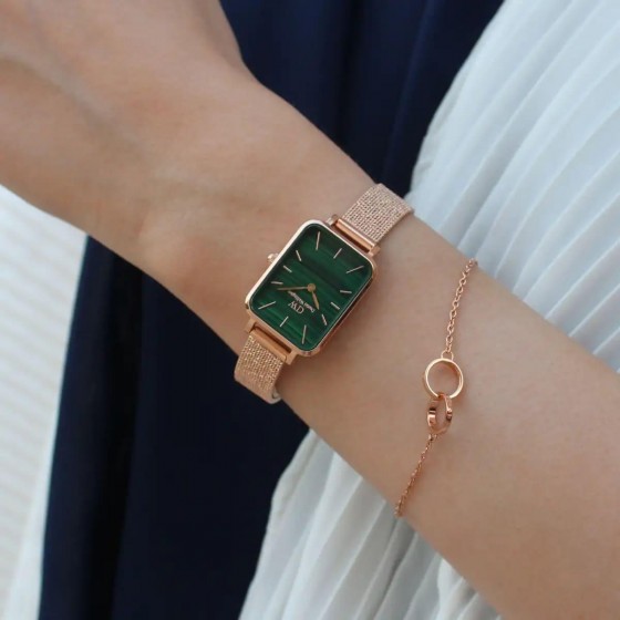全新Quadro方錶系列是Daniel Wellington首次方形設計腕錶,錶身採用拋光不銹鋼製成,精緻的玫瑰金或是極光銀兩種錶身選擇。別緻的方形錶面有蛋殼白、經典黑和伯朗大道綠三種款式,搭配新型的麥穗式金屬編織錶帶或是細緻的壓邊皮革錶帶,讓妳的造型更為出眾,成為眾人的目光嬌點!