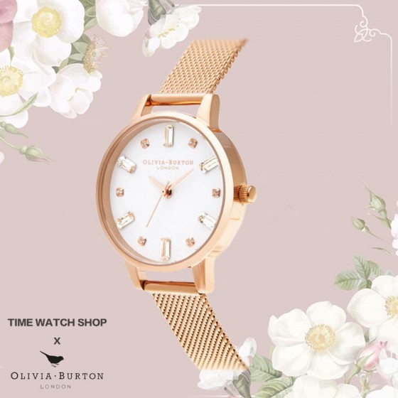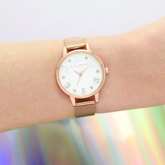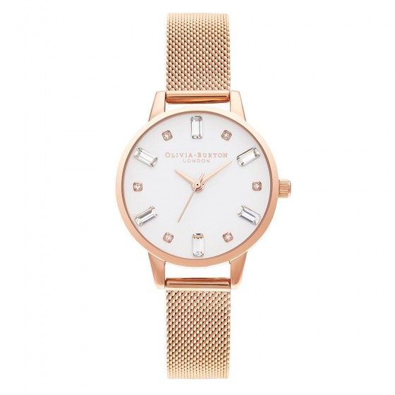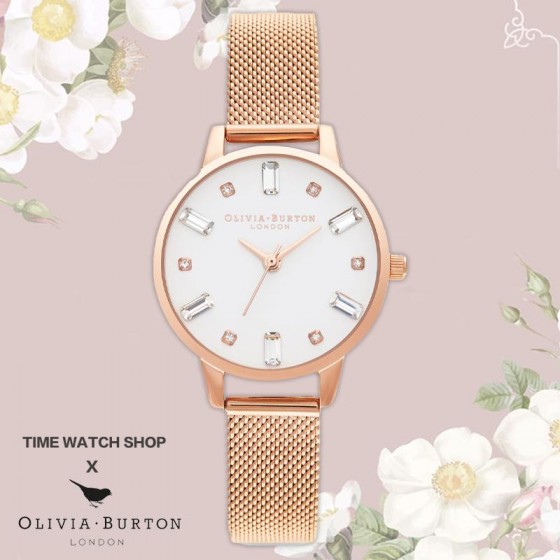 Olivia Burton OB16BJ02 玫瑰金殼白面不鏽鋼米蘭腕錶