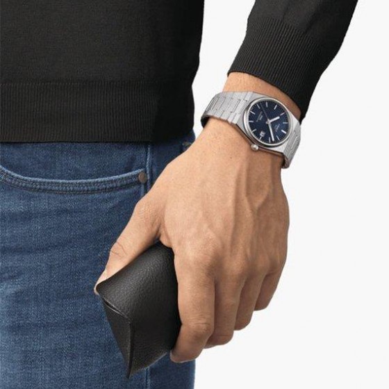 PRX 40 205腕錶給人感覺尤為纖薄。指針緊密層疊,錶盤更貼近錶鏡,讓纖薄效果更進一步。