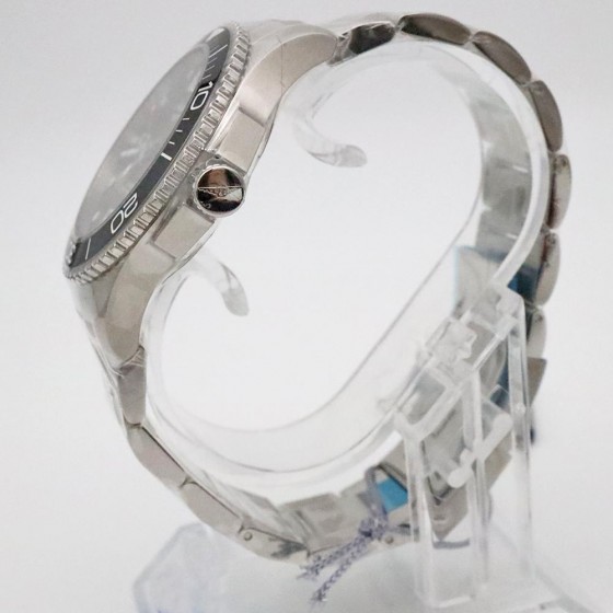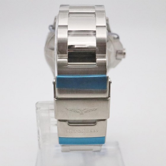 整體以銀與藍與為基調,把質感表現的淋漓盡致,潛水錶最基本特徵的可旋轉外環