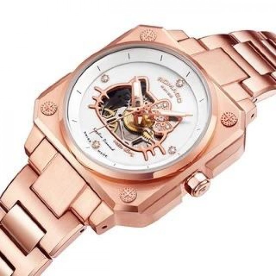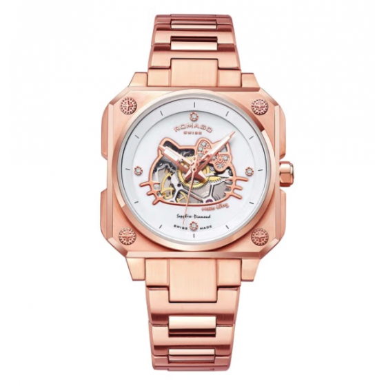 為重申高級製錶對卓越和創新的追求,品牌將透明、透視概念定義為一種大趨勢。這款腕錶的機芯承接ROMAGO皇家大師X HELLO KITTY藍寶石自動腕錶的概念,毫無保留地展示了一切,在有形與無形之間展現其獨特的結構美學。