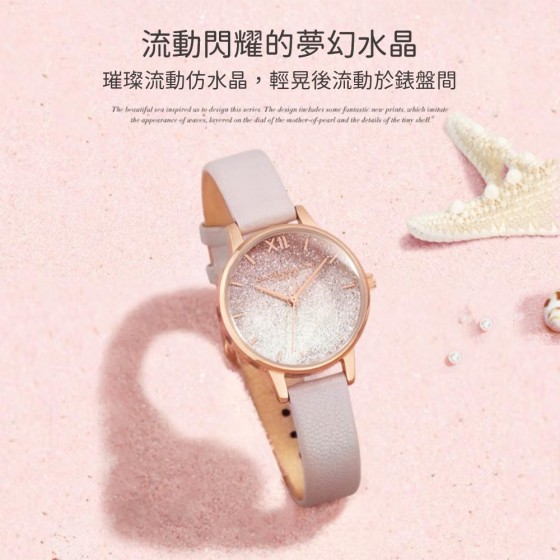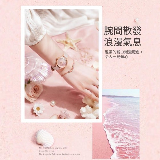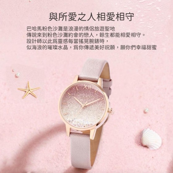 ● 錶帶材質 : 粉色微光皮革錶帶