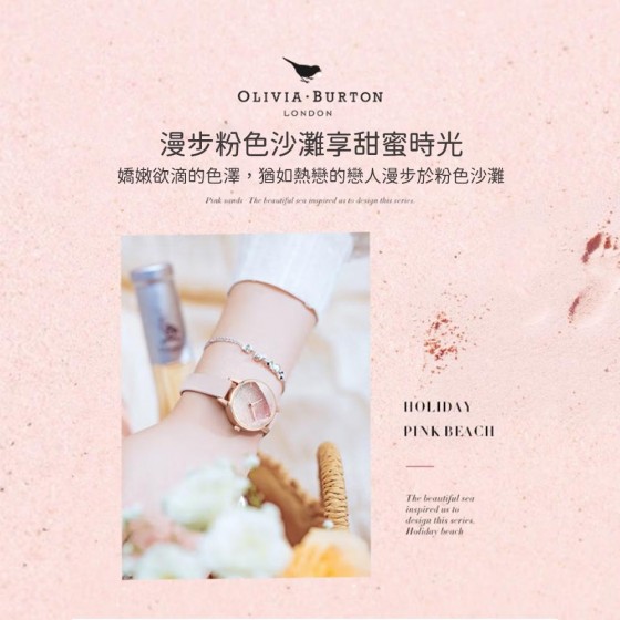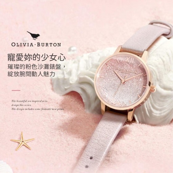Olivia Burton OB16US57 迷你錶盤滾珠浪漫粉紅沙灘玫瑰金手錶 女錶 公司貨生日禮物