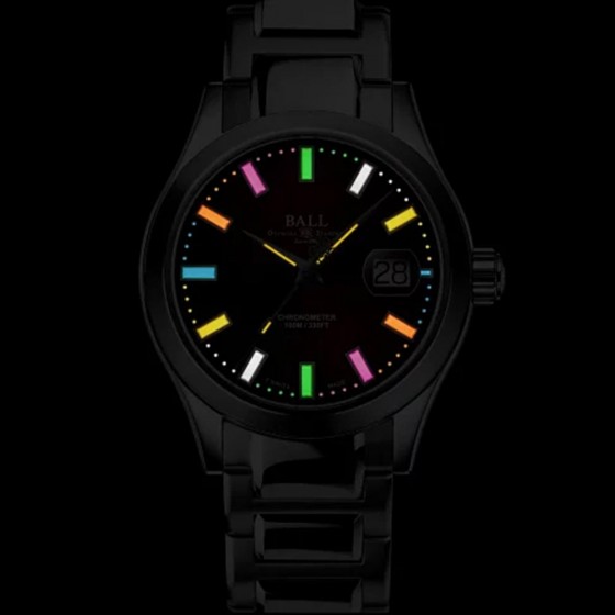 • BALL 瑞士 波爾錶 NM9026C-S27C-RDR 彩虹燈管 機械腕錶 熱門款 酒紅鋼帶