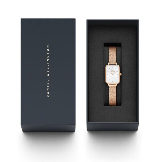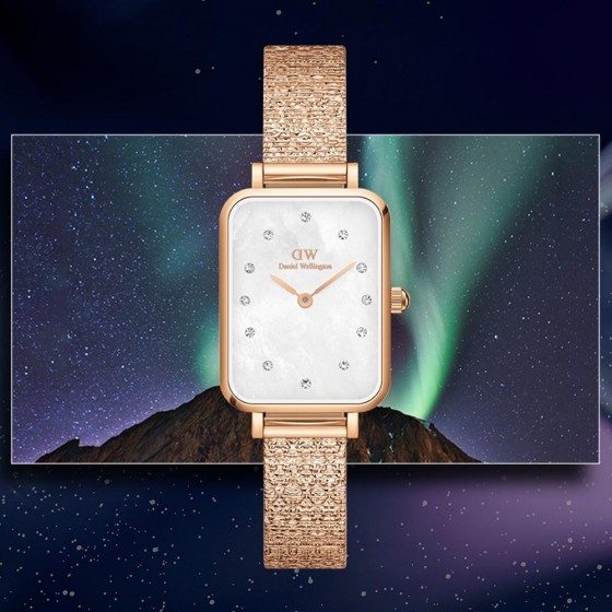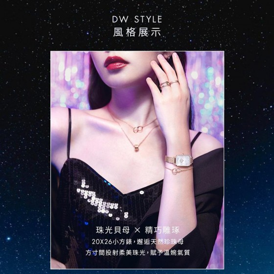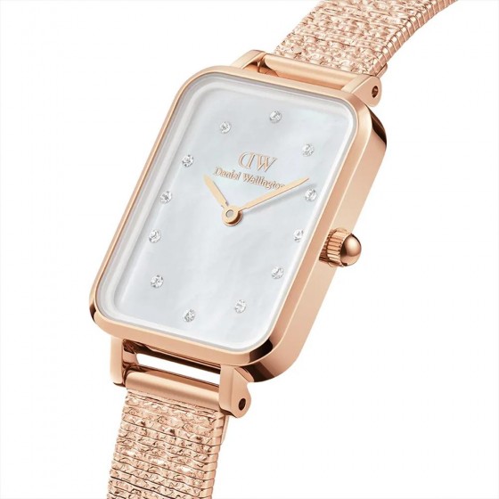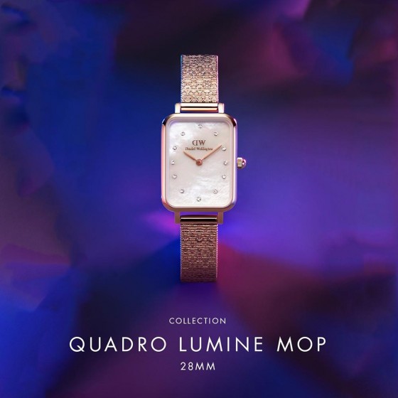 Daniel Wellington DW00100578 QUADRO LUMINE 玫瑰金殼珍珠母貝面方型米蘭腕錶