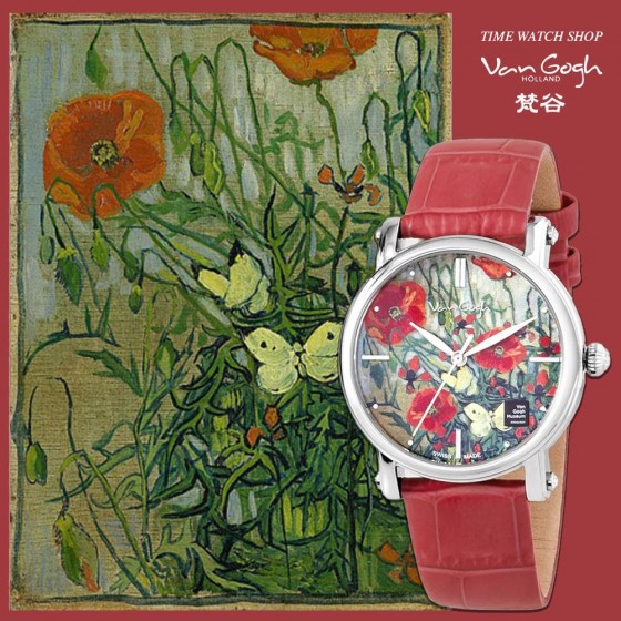 梵谷 Van Gogh Swiss Watch LADY 15 蝴蝶與罌粟花 經典名畫女錶