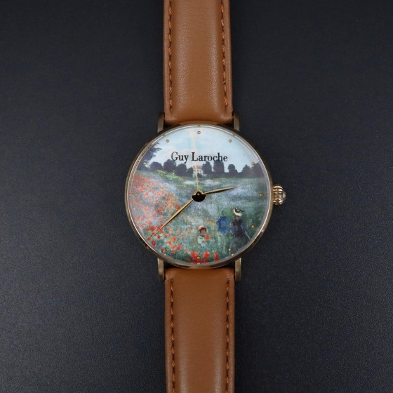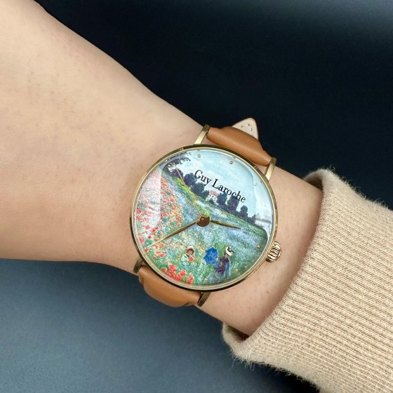 姬龍雪 Guy Laroche GA1001WP-03 莫內 阿爾讓特伊的罌粟花園 油畫系列藝術腕錶