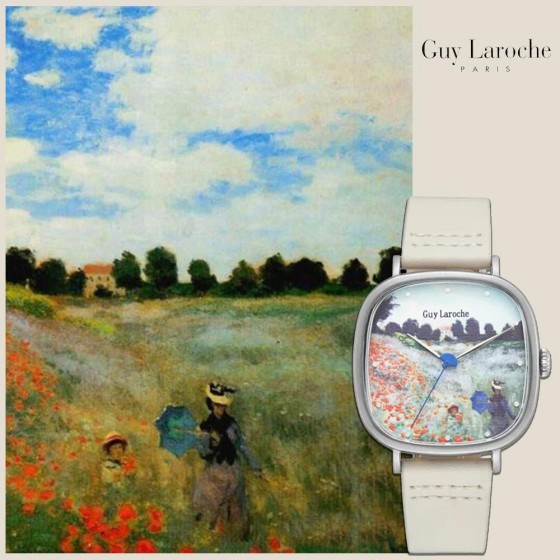 Guy Laroche 姬龍雪 油畫系列藝術腕錶 阿爾讓特伊的罌粟花園 莫內(GA1002WP-01)