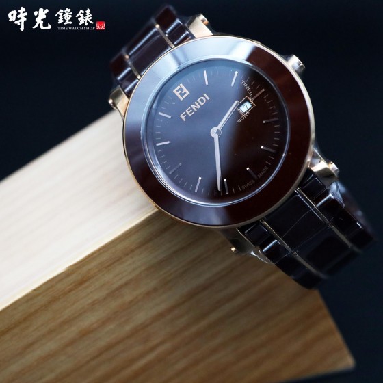 • FENDI 芬迪 Brown Caramic F684120鍍玫瑰金+陶瓷 巧克力色 時尚 石英 女錶