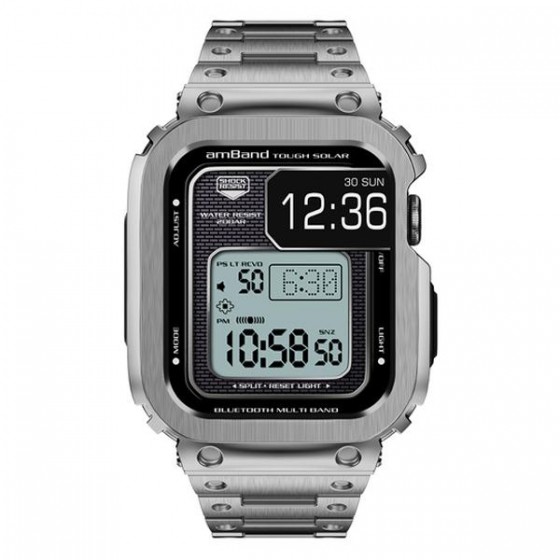 AmBand Apple Watch 專用保護殼 銀色軍規級全不鏽鋼殼帶 7/6/SE/5/4