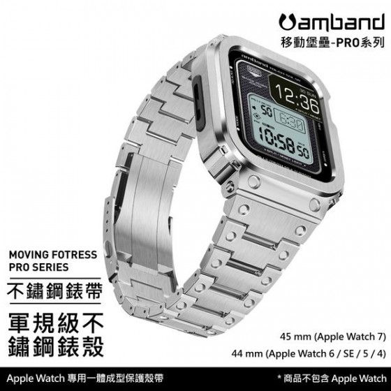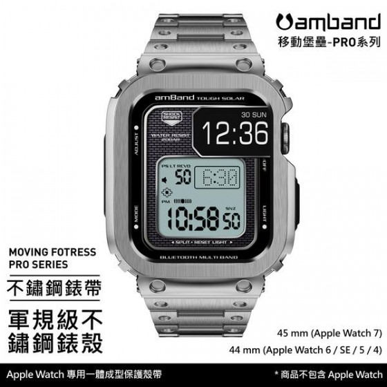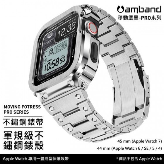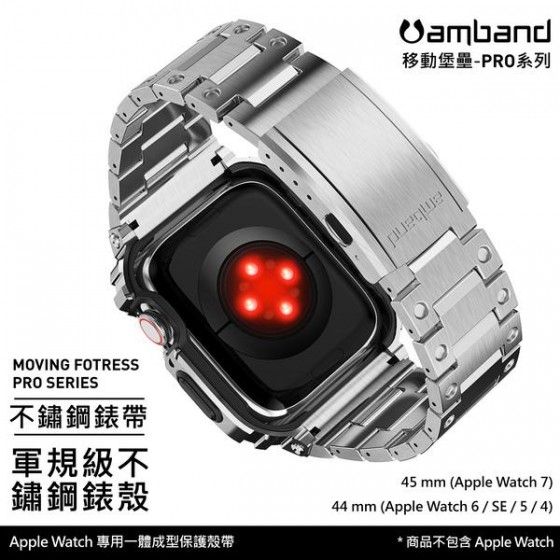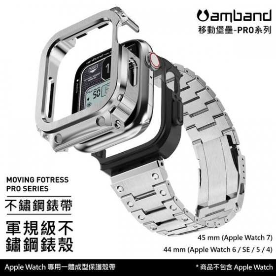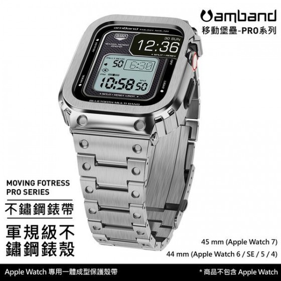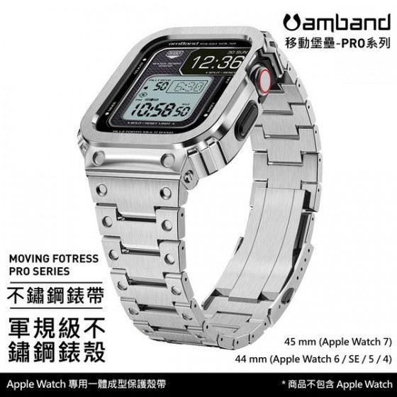 • AmBand Apple Watch 專用保護殼 銀色軍規級全不鏽鋼殼帶 7/6/SE/5/4