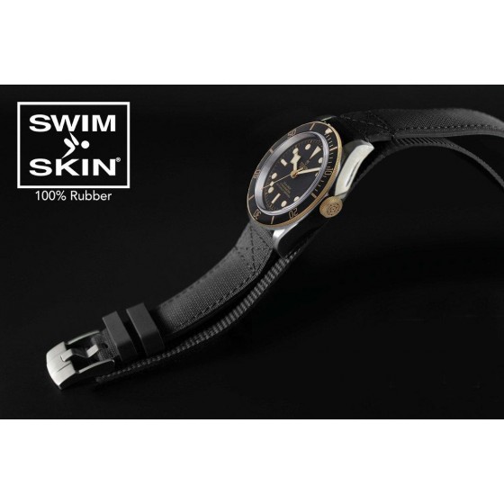 硫化橡膠錶帶/戰鬥錶帶,適用於相應表耳空間為 21-22 毫米的手錶。這款高科技錶帶採用我們的獨家專利技術“SwimSkin®”製成,經過多年的開發,需要全新的創新機械和工程技術。