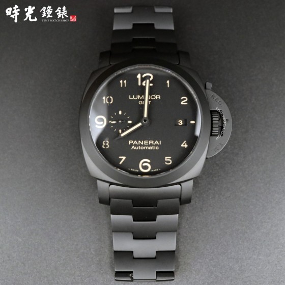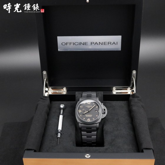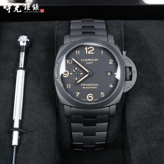 • PANERAI 沛納海 PAM01438 PAM1438 黑色陶瓷 啞光黑 黑面 經典三明治面盤兩地時區
