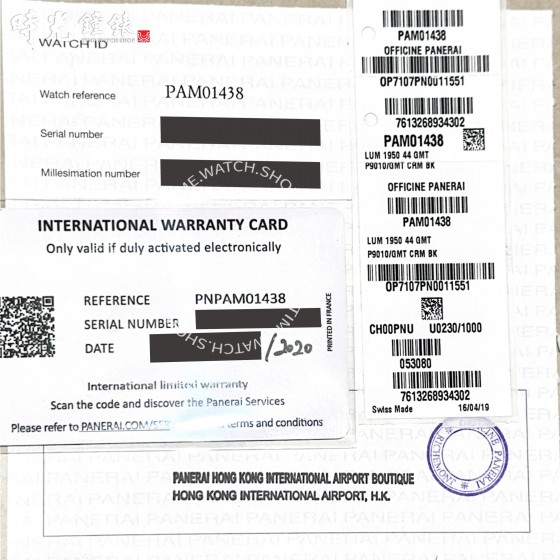 【功能】:沛納海燻黑版 P.9001 自動上練機芯 / 時、分、小秒針指示 /GMT兩地時間顯示/能量顯示/ 3點鐘位置日期窗顯示 / 防水100米 / 72小時動力儲存