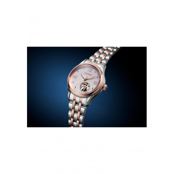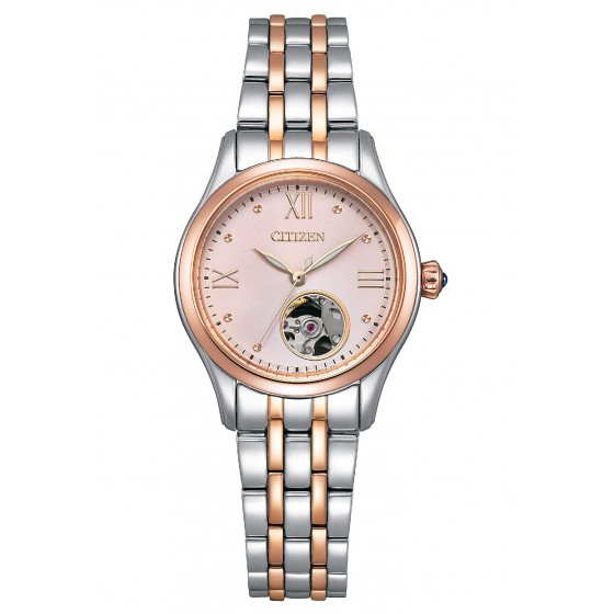 • CITIZEN 星辰 PR1044-87X 光動能 藍寶石玻璃 銀X玫瑰金 優雅鏤空機械腕錶