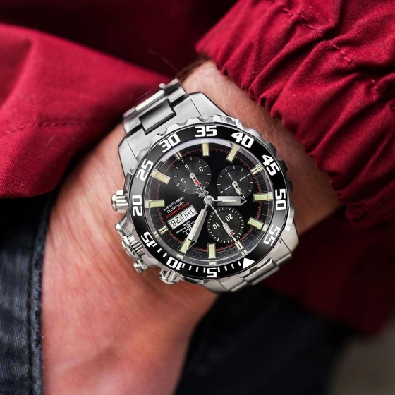 • 時、分、小秒針;星期及日期顯示