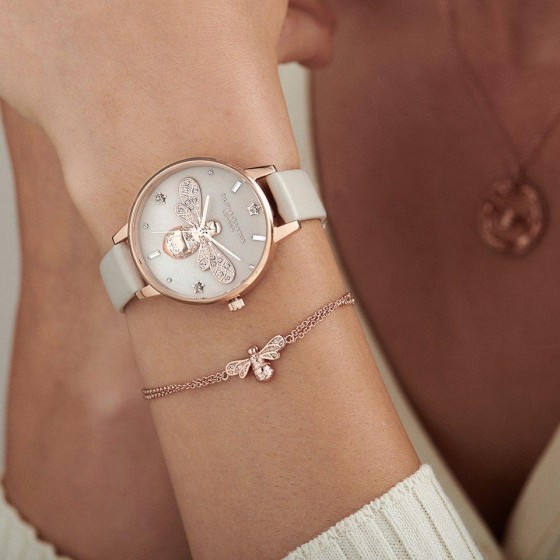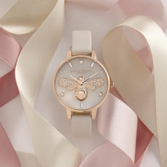 Olivia Burton Sparkle Bee 新色登場 ! 閃耀璀燦光芒的美麗貝面錶盤搭配上經典迷人的 3D 蜜蜂,閃耀夢幻般的英倫質感魅力。