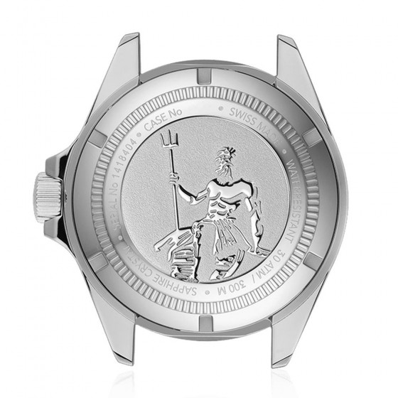 搭載藍寶石水晶鏡面,錶殼底蓋刻有獨特的海神波賽頓雕刻圖騰