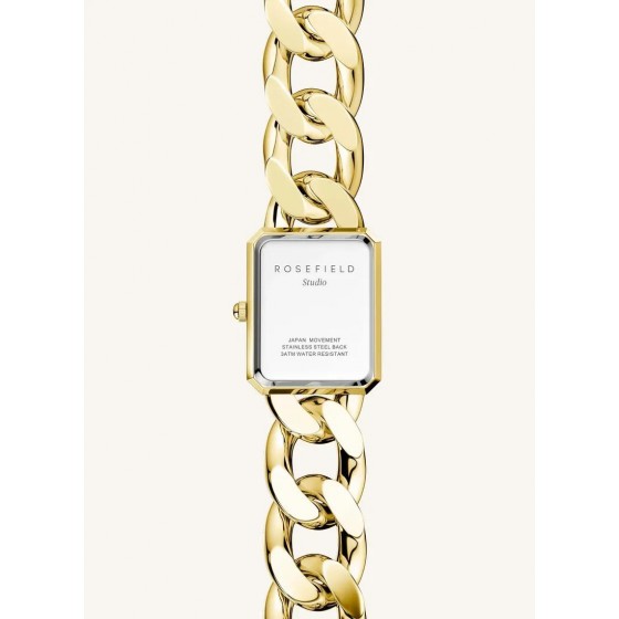 更輕靈小巧的錶徑,鐲鍊採用 Rosefield 品牌漏刻的 T 型錶扣閉合,可鎖定在 O 形環結,充滿優雅細節的復古輪廓。