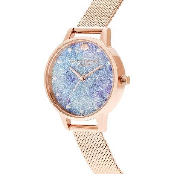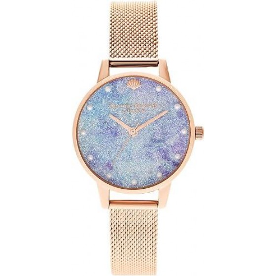 【高雄時光鐘錶公司】Olivia Burton OB16US44 貝殼珍珠閃耀藍紫面 不鏽鋼玫金殼 米蘭帶腕錶