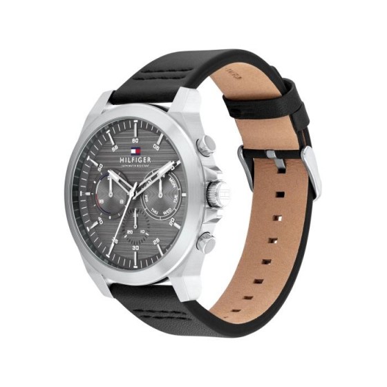 • 原廠保固兩年【高雄時光鐘錶】Tommy Hilfiger 1710521 銀殼 正式 皮帶腕錶 男錶