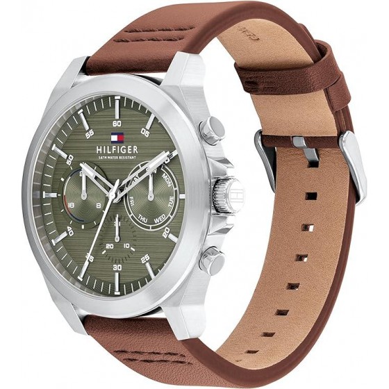 • 原廠保固兩年【高雄時光鐘錶】Tommy Hilfiger 1710522 綠面 皮帶 月份 星期 顯示 計時 腕錶