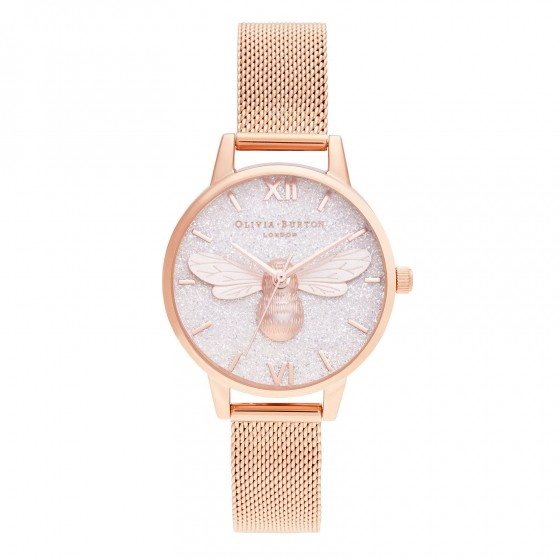【高雄時光鐘錶】Olivia Burton OB16FB04 Lucky Bee 系列 閃耀粉色系 經典蜜蜂 米蘭錶帶