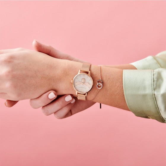 • 【高雄時光鐘錶】Olivia Burton OB16FB04 Lucky Bee 系列 閃耀粉色系 經典蜜蜂 米蘭錶帶