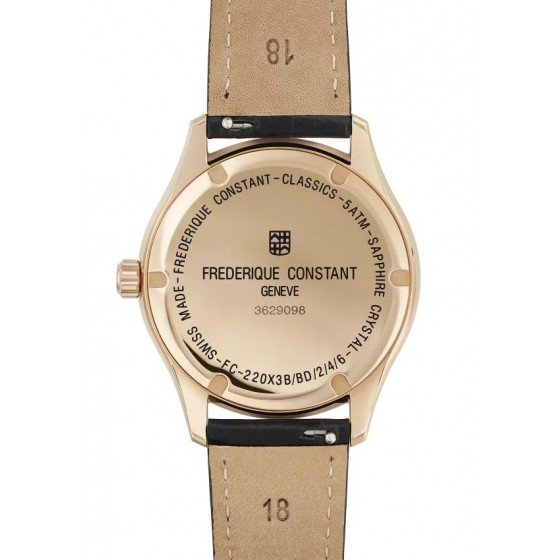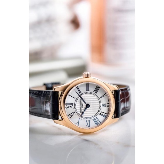 腕錶搭載FC-220 石英機芯,防水深度達50 米,每個型號均以飾有扭索飾紋的錶盤、羅馬數字時標、手工拋光指針以及位於6 點鐘位置的日期窗口為特色。