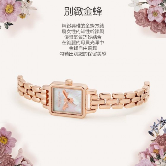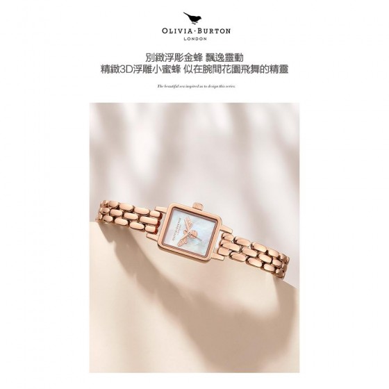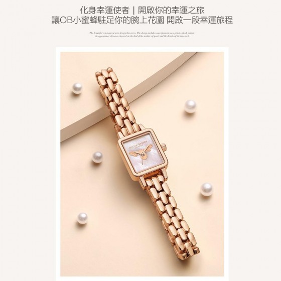 Olivia Burton 小巧迷人的Lucky Bee系列 ! 19mm 小錶徑增添浪漫的夢幻氣質,搭配上品牌標誌性蜜蜂設計, 將時尚提升至永續迷人的高度。