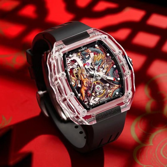表盤:鏤空,立體龍馬精神圖案,夜光刻度及指針